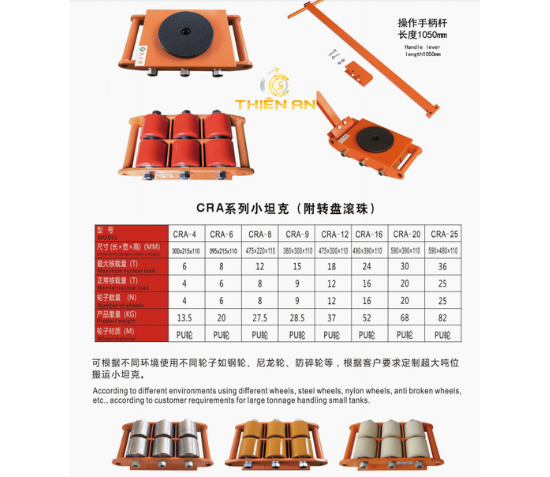 Rùa lăn KYOTO 15 tấn CRA-9 là dòng rùa lăn công nghiệp chịu tải trọng lớn, được thiết kế để di chuyển các loại máy móc, thiết bị siêu trọng lên tới 15 tấn. Với khả năng xoay 360 độ, sản phẩm mang đến sự linh hoạt, an toàn và hiệu quả trong vận chuyển.